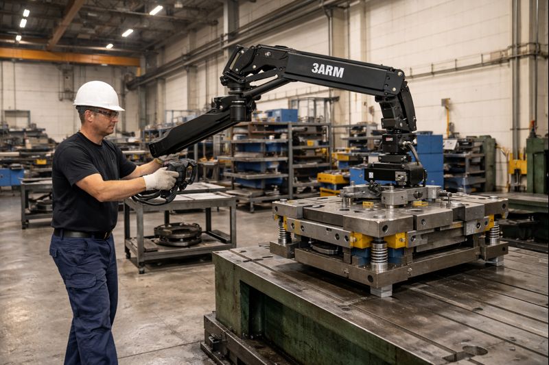 In the case of 3ARM, our articulating arms are designed to integrate directly into the press environment, adapting to the tooling geometry and the real workflow of each customer. Solutions such as an industrial manipulator arm ensure precision while maintaining operator control.