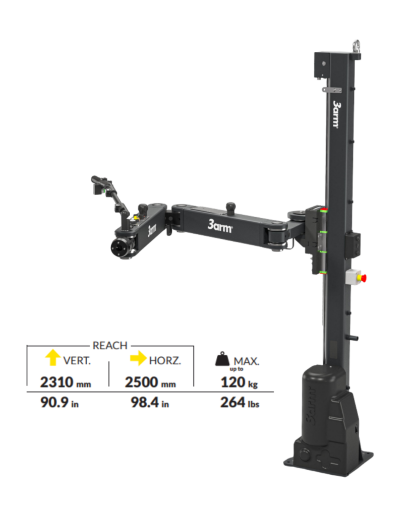The 3arm Manipulator Arm can be equipped with a variety of specialty gripping tools. It is engineered to manually handle, center and set loads of up to 50kg in a weightless condition, in any direction. The Manipulator aids the operator in precise ergonomic work handling, effortlessly and safely.