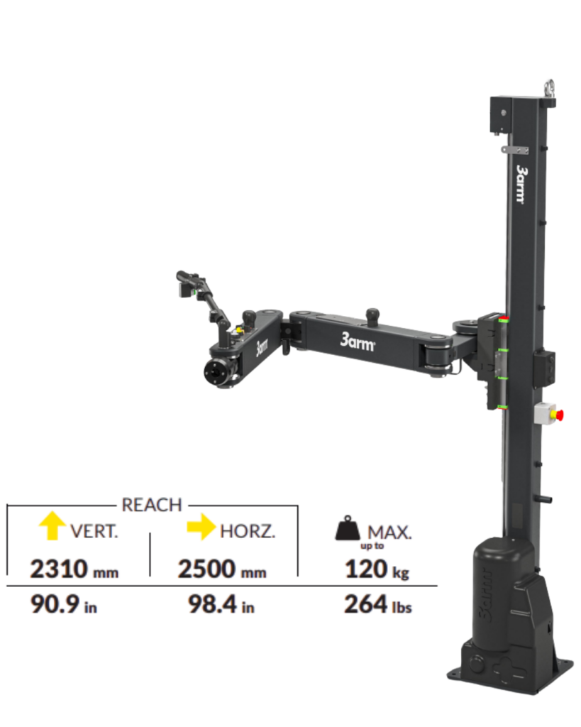 The 3ARM Manipulator M10 can be equipped with a variety of specialty gripping and effectors. It is engineered to manually handle and lift loads up to 120kg in any direction. The Manipulator aids the operator in precise ergonomic work handling, effortlessly and safely.